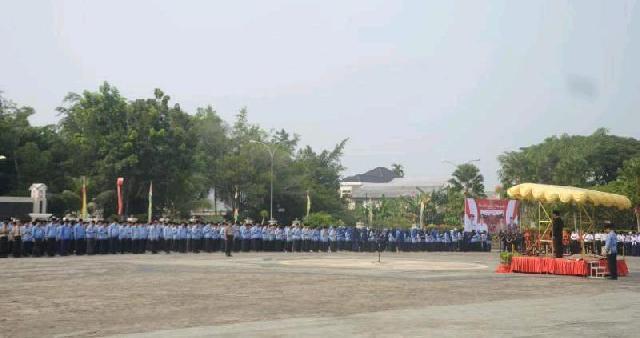 IPDA R. Samosir bertindak sebagai Komandan Upacara dengan Inspektur Upacara Bupati Indragiri Hilir HM Wardan.